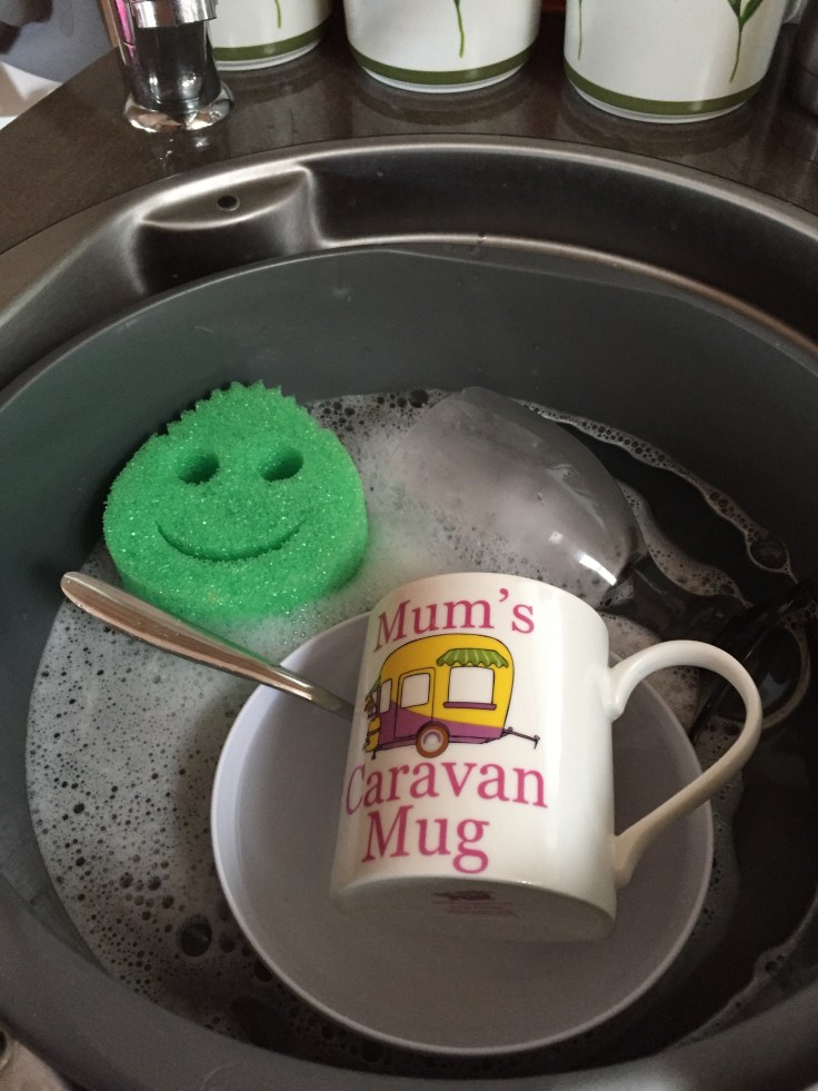 I hate washing up and have a dishwasher at home but in the caravan it’s a necessary task, unless of course you can eat out all the time. This sponge/scourer is multi functional. Used in hot water its soft and squishy like your traditional washing up sponge. In cold water it’s harder, yet kinder, than any other scourer I’ve ever used. No chemicals are required to remove the toughest stains, just cold water.