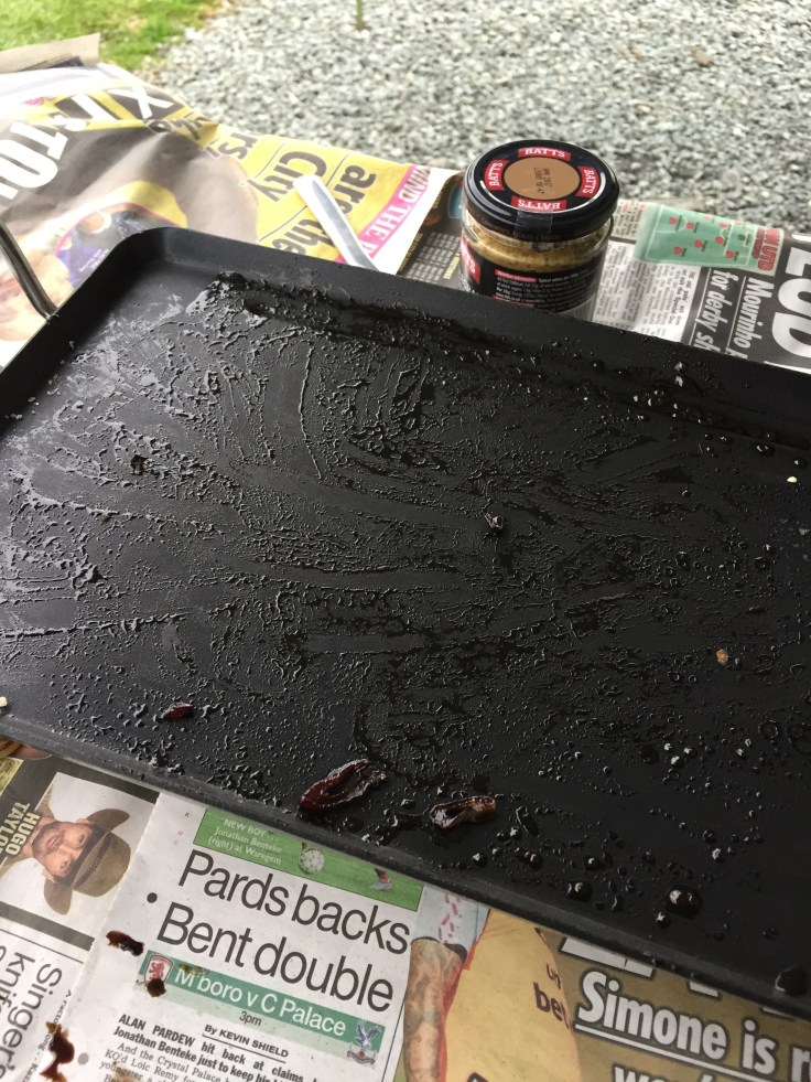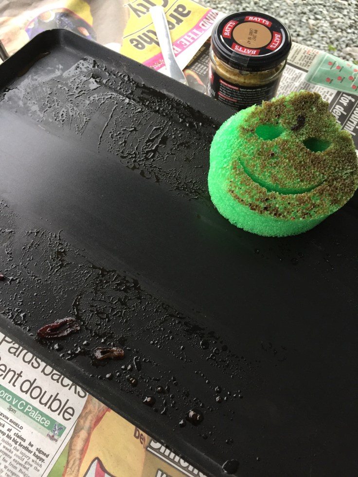 Great for removing tough burnt on stains with very little effort. We cooked on the teppanyaki, normally this is impossible to clean once it’s gone cold without risking scratching the surface. Today I decided to see what the Eggsterminator was made of.