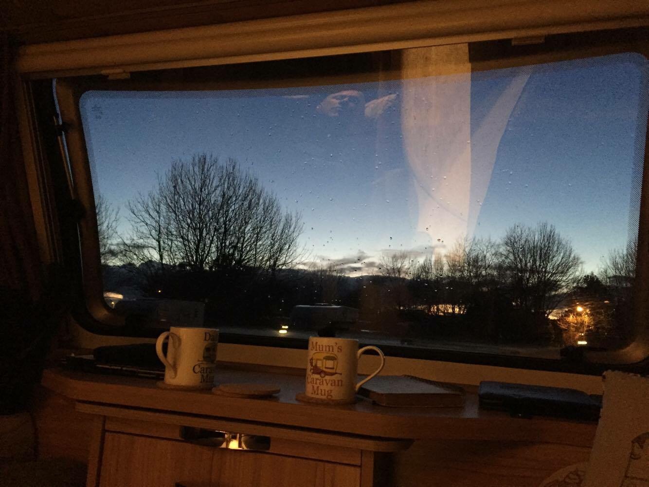 Us? After our wander around the site I like to prepare dinner. Eat, watching the world starting to settle whilst listening to Radio 2. Showing my age now. Back in the day I was a Radio 1 girl. Food dutifully snaffled, time for a cup of tea. It’s up to the The Boss to provide this beverage, normally brewing as we do the dishes. We wash up in the caravan, no trailing dirty pots across to the dishwashing area provided on site for us . Bailey provided me with a sink and a drainer and I use it. Plates returned to the cupboard and depending on the DJ on the radio determines whether we carry on listening or play something off the ever growing list of music on the iPad. Music has been a passion of ours from our early teenage years and we love harping back to our past. Name that tune in… is a challenge we like, got to name the song before the singing starts. Tonight it’s iPad and the past. Tears for Fears, Elvis Costello and Secret Affair serenade us through the evening.