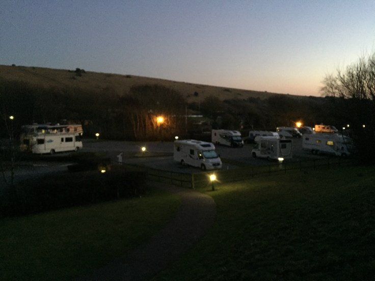 Caravans with lamps, caravans with candles. TV’s flicker the news as dinner is prepared. Food smells waft on warmer days. Dogs bound around on their final walk of the day. Children doing their last circuit of the site on their bikes and scooters.