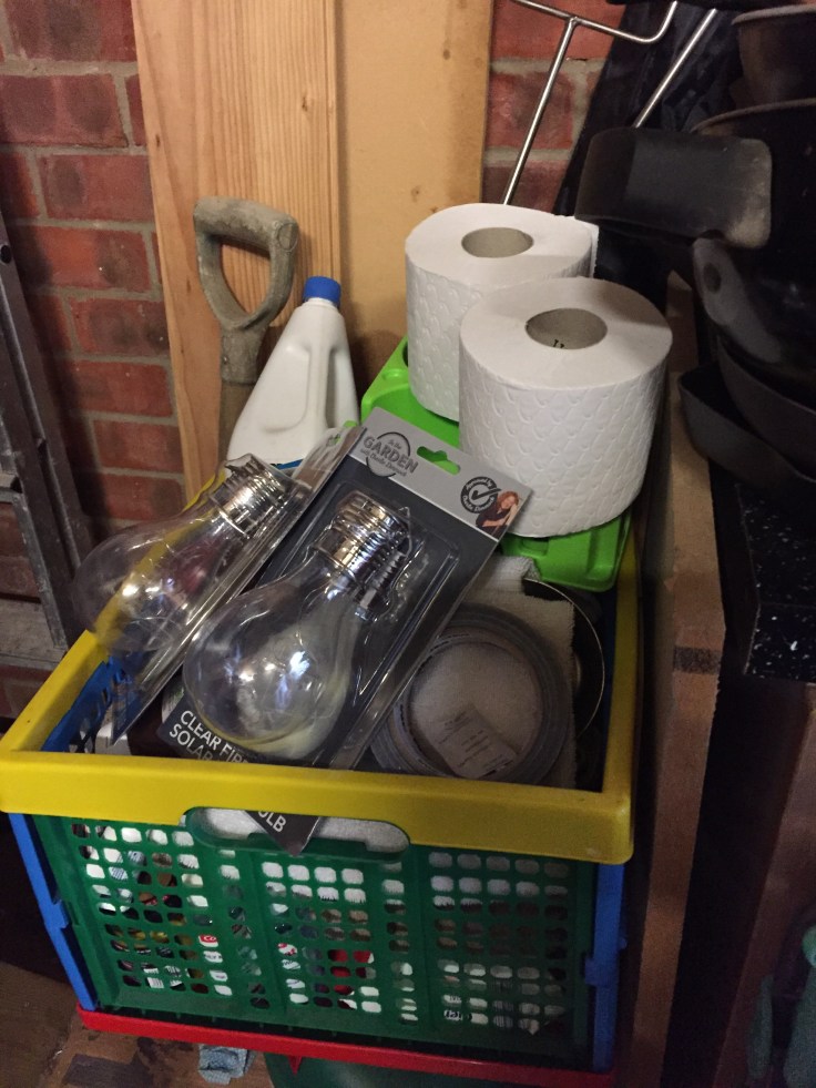 2. When we had adult children still living here, we had to take anything fresh they wouldn’t eat. The times we returned to find mouldy fruit and veg. We also have a couple of boxes for restocking the van. And one for Marks shoes. 🙄
