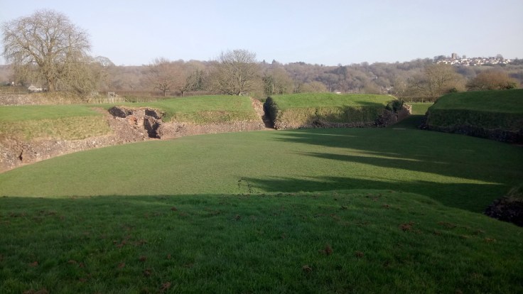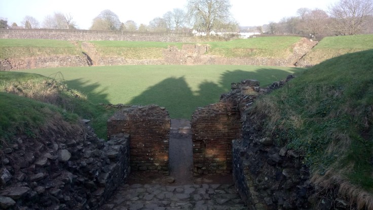 On the way back from Bristol, back in Wales now, we took the short diversion off the M4 to Caerleon, once home to the Roman Legionary Fortress, Isca Augusta. Both the Wales National Roman Legion Museum and Roman Baths Museum are situated in Caerleon but, (a) because they are just closing and (b) because it’s hard to get money out of The Boss’ pockets we are deliberately heading for the Amphitheatre, visually stunning remains of the Roman Amphitheatre that stood around the period 90AD, give or take a year. Looking down at the arena from the banked terraces you could almost imagine the noise of thousands watching live hunts, public executions and Gladiator competitions where life and death was decided by a thumbs up or a thumbs down, a bit like YouTube then. A short walk around town and we realised that Caerleon deserved much more than the time we gave it.