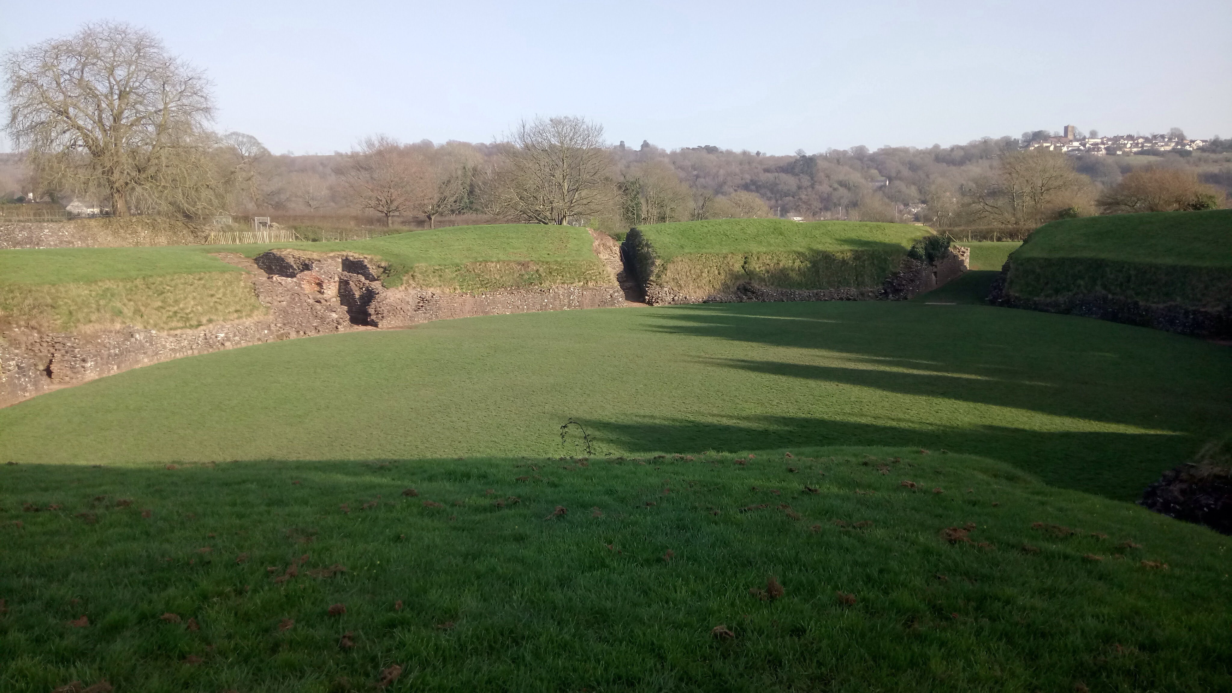 On the way back from Bristol, back in Wales now, we took the short diversion off the M4 to Caerleon, once home to the Roman Legionary Fortress, Isca Augusta. Both the Wales National Roman Legion Museum and Roman Baths Museum are situated in Caerleon but, (a) because they are just closing and (b) because it’s hard to get money out of The Boss’ pockets we are deliberately heading for the Amphitheatre, visually stunning remains of the Roman Amphitheatre that stood around the period 90AD, give or take a year. Looking down at the arena from the banked terraces you could almost imagine the noise of thousands watching live hunts, public executions and Gladiator competitions where life and death was decided by a thumbs up or a thumbs down, a bit like YouTube then. A short walk around town and we realised that Caerleon deserved much more than the time we gave it.