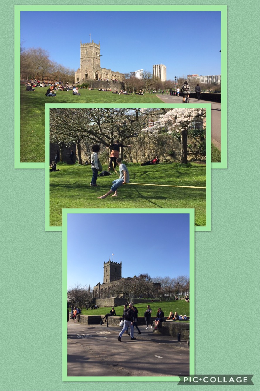 Heading out of the centre we made our way towards Bristol Harbour. The world and his wife were out enjoying the March sunshine. A hop, skip and a jump out of the city centre, Bristol sports vast amounts of green. Green that today was being used as it should. People kicked their shoes off and shared lunch. Chatting on the phone, working on laptops. The green space alongside of the river was being used to its full extent. A busker serenaded lunchtime with a gently played guitar. A tightrope had been strung between two trees as 3 young adults showed us their skills for added lunchtime entertainment.
