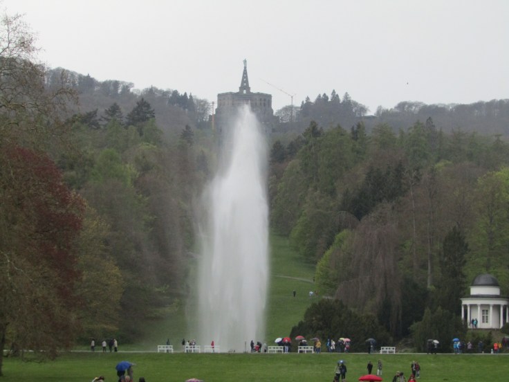 From May to early October, every Wednesday, Sunday and Public Holiday at 2.30pm 750,000 Litres of water are released from the Octagon/Herkules Monument to cascade down a long series of ornate platforms before continuing down through eight miles of watercourse that includes a further four spectacular water features, which today are open for us to enjoy. You walk from feature to feature just in time as the water reaches each one at a specified time culminating in a 50 metre Geyser/Fountain at the bottom.