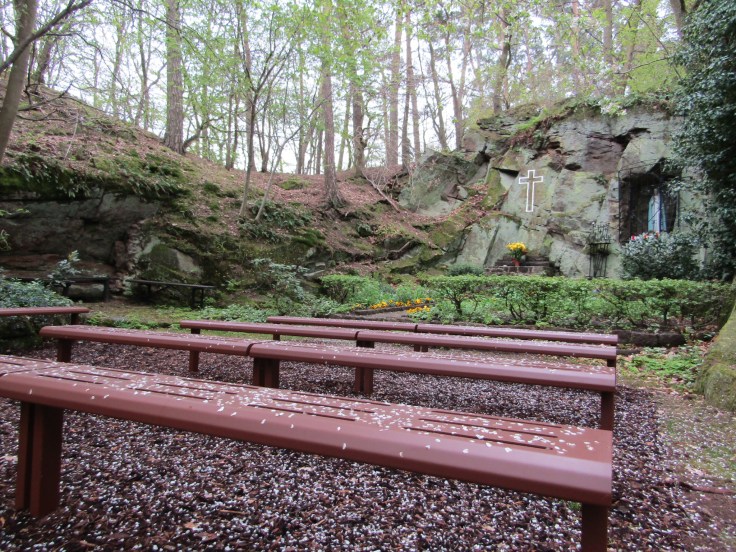 Next stop Fatima’s Grotte, all the way up another hill. Built by pilgrims as recently as 1956 a local landmark that hosts religious services in May and October. The Boss said if his church had been like this he may have gone more.