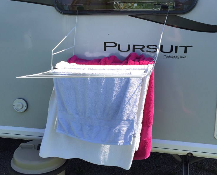 With The Boss not liking taking his wallet out of the mothballs and spending money on the drier again, the first hint of sunshine and I was racing to beat the rest of the site to the solitary washing machine. As I entered the laundry I was pleased to see the machine standing quietly in the corner. At a charge of just €3 and a huge drum I took this as a bargain and decided to wash the lot if we weren’t wearing it. Towels, jumpers, bedding, the lot went in. It does sound an ambitious sized drum doesn’t it? I splashed out and did 2 loads.
