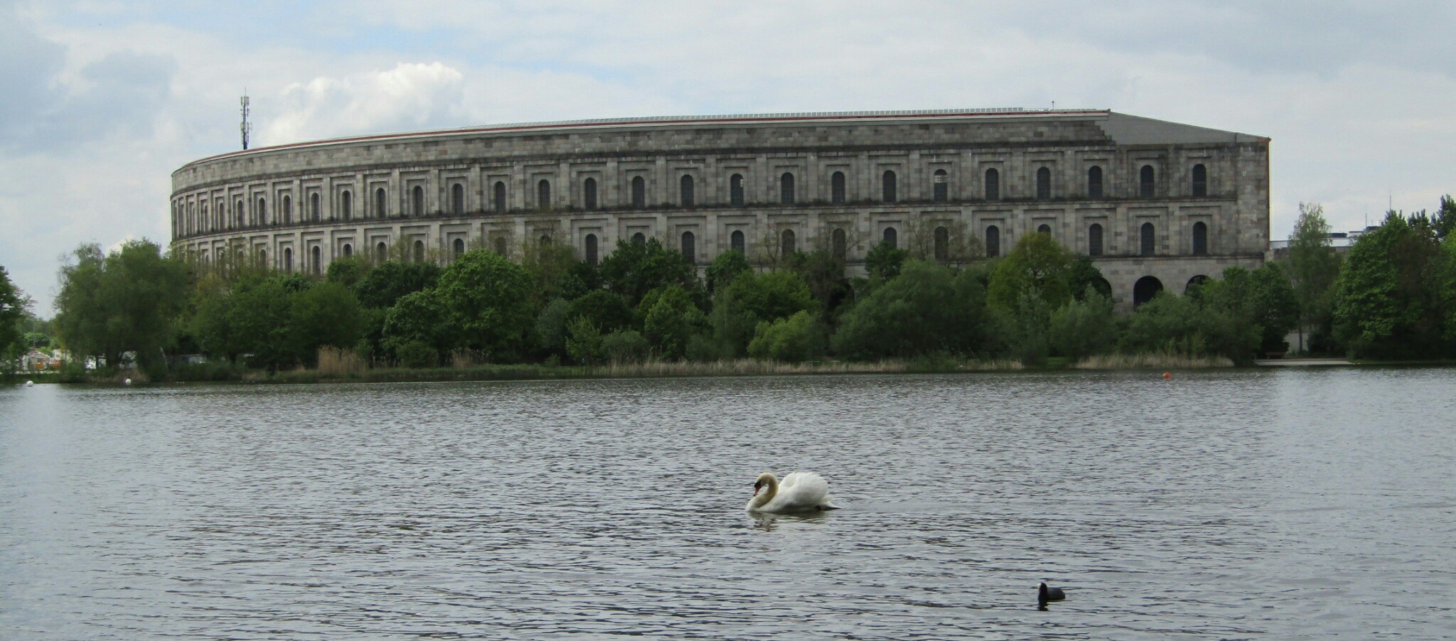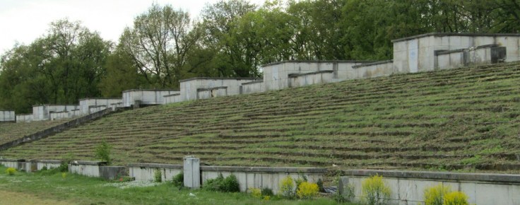 We left the museum and took the short walk to the Zeppelin Fields, a rather weird experience to stand in the footsteps of history looking at the vast arena, now looking ramshackled around the edges and converted into various sport fields, including a motor racing circuit, in the centre.