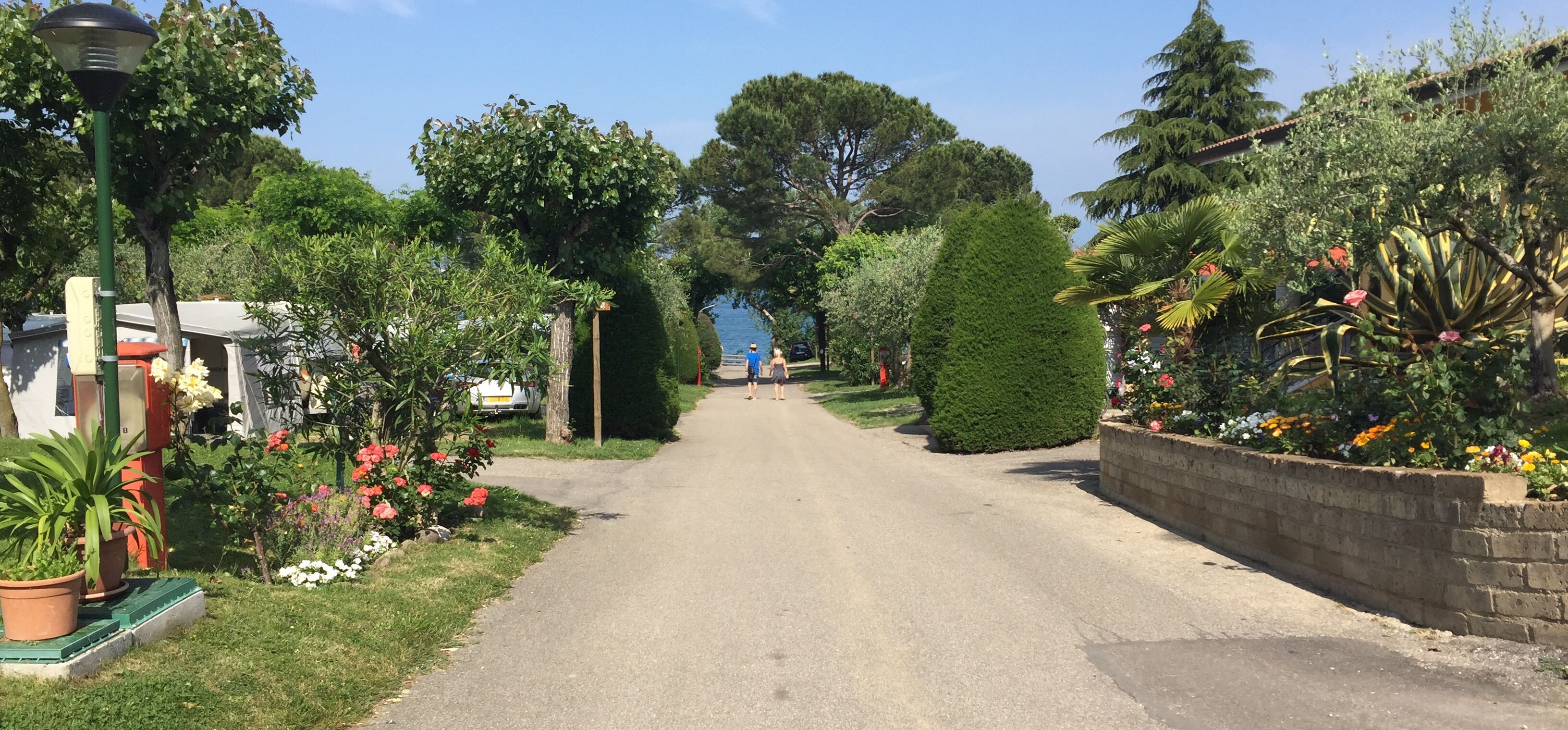 After driving through a biblical storm on the Brenner Pass we arrive at Camping Fossalta in Lazise. As we enter the site the clouds part revealing clear blue skies.