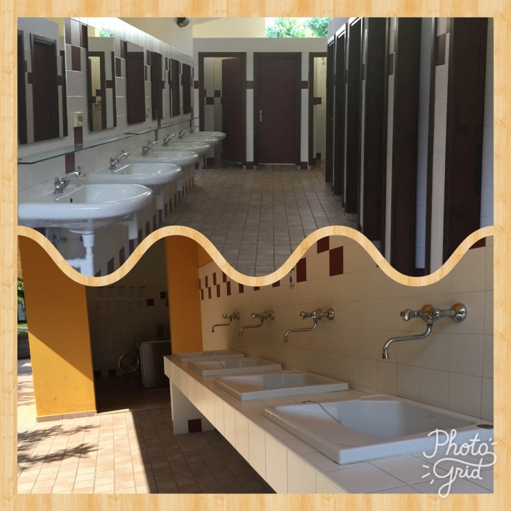 Two facilities blocks are located on site, one in the lower end near the lake and one in the upper part of the site. Whilst these facilities are spotlessly clean they do have a couple of draw backs. Water temperature and pressure can be hit and miss depending on whether other showers are being used. The cubicles are very small with two hooks for hanging. There is nowhere to put anything down and very little space to get dry. The toilets are clean but toilet roll, hand soap and hand dryers or paper towels are not provided. The separation wall between the gents and the ladies was approximately 10 foot high with a similar sized gap above. I wasn’t keen on hearing the daily ablutions of men whilst going about my business. It did mean The Boss and I were able to chat one evening on our final visit before bed. Outdoor washing up and laundry sinks are also on this block and a washing machine and tumble drier.