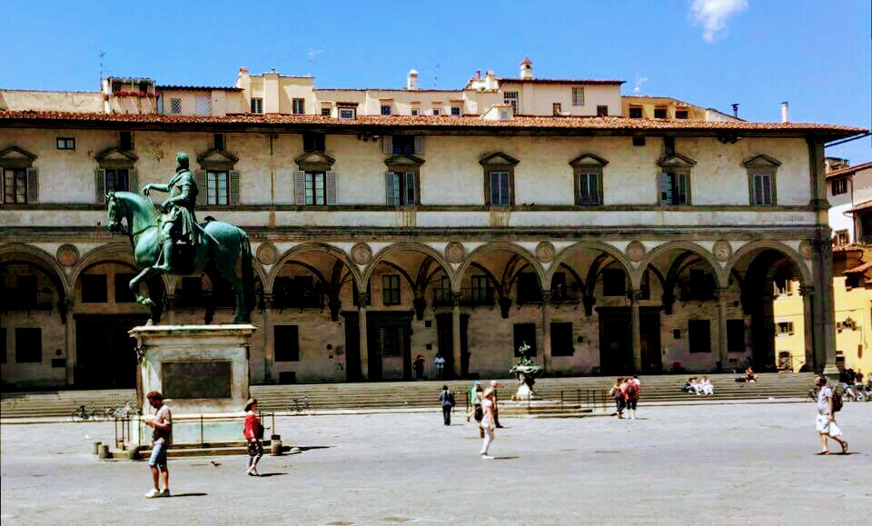 Friday, and time to go to Firenze (Florence for you British people). To be honest, three days of sightseeing is making us weary, how the people on those coach tours cope, jumping on and off coaches and traipsing around after a person holding a flag in the air, we will never know. It is hot, very hot, the mini-bus is almost on time and is bigger to cope with sixteen people, as expected we toured all the free roads in Tuscany to get there while the driver simultaneously made numerous essential phone calls that inconveniently forced him to drive ‘no hands’ to negotiate roundabouts and change gear. We are kicked out at the bus station in Firenze. The Boss, eager to demonstrate to the other passengers, now desperately reviewing their maps, that the British don’t need maps started walking. One minute later we are walking along platform sixteen of Firenze railway station with sixteen others following us. We had to ‘cool it out’ and luckily there was no ticket collector at the platform exit and we walked heads high out the station.