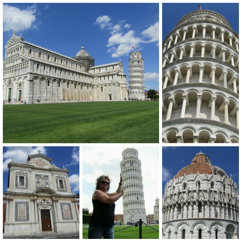 Rucksack is packed with water, sunglasses, water, sun cream and more water. Three other couples await the mini-bus by reception, it’s late (Italy, remember!) we are provided with maps of Lucca and Pisa and the nice Lady even circled all the must-see places. Lots of circles on the Lucca map, but ominously, only one circle on the Pisa map. The mini-bus took a while to reach Lucca, the Boss reckoned he was using our 1950s satnav but also suspected avoiding road tolls had something to do with it. Unloaded on the pavement we took a picture of the mini-bus Reg plate in the hope we would see it again. For it’s size Lucca is impressive, we are finding that these places are spectacular throughout and not just in patches with modern buildings between as seen in UK. Entire streets are paved with the Italian equivalent of ‘York Stone Flags’ that create a distinct ‘choppy’ sound as cars and scooters whizz by at approx 80mph (Italy, remember). We treat ourselves to lunch (too posh to call it dinner) in the Piazza dell’Anfitreatro within a beautiful circle of buildings. After three hours admiring the town we are ‘done’ and realise why we don’t like arranged trips, we can’t move on, so we kill time walking the city walls and note boards advising The Rolling Stones are in town in a couple of months, another medievil attraction.