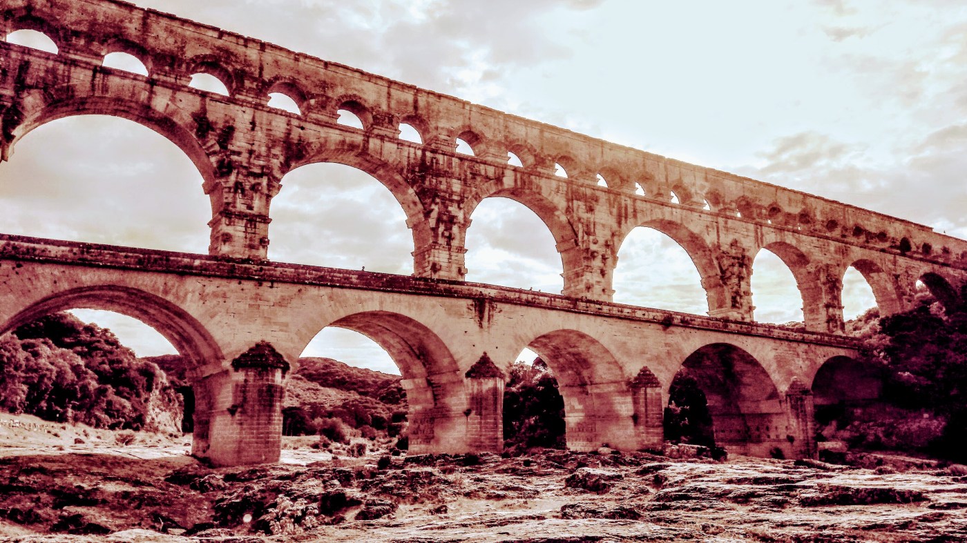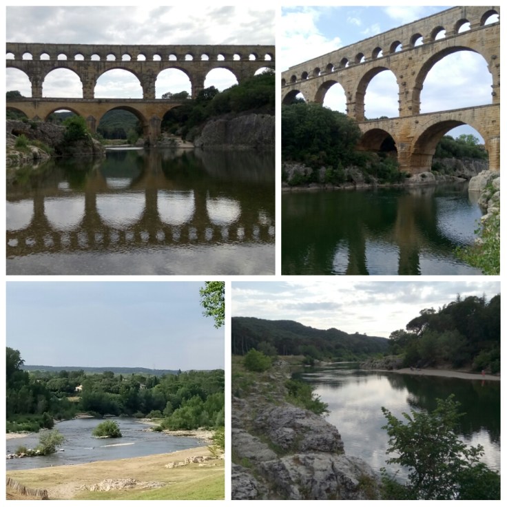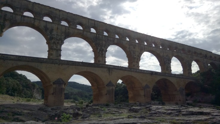 Our destination is Pont du Gard and once again we adopt the turn up and see method as we approach Camping La Sousta. Yes, there is room, drive thru and find a pitch of your choice. Now this place is distinctly ‘Forest’, no one would ever describe this as straight rows of white boxes. Basically, you squeeze your caravan between any trees you can, in whatever direction you end up facing, no room for the awning here, but tree cover is dense so don’t need it. You see lots of partners walking ahead of car/caravans making sure low tree branches are not about to rip off TV aerials or worse. A trip to the toilet and I am in deep trauma, communal loos and showers, albeit you do have your own door, I can’t cope with that, I can barely cope with someone of the same sex in the next cubicle. The Boss, realising my anxiety, suggests we walk to Pont du Gard tonight and move on tomorrow, so we barely unpack or unload anything.