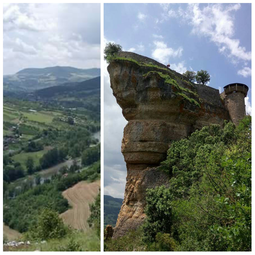 We live to tell the tale and emerge onto the D991 running alongside the La Dourbie river and the ‘greenest’ water we have ever seen. Soon after we spy a village that appears to be perched very precariously on an overhanging rock, we go for a closer look. Cantobre turns out to be a very rare thing, beautiful to look at, beautiful to look from, no ‘tat’ shops or cafes, just a village being a village. Our only complaint? Two or three post boxes had English nameplates suggesting holiday homes, as with many places we would prefer them to be ‘locals only’ rather than standing empty.