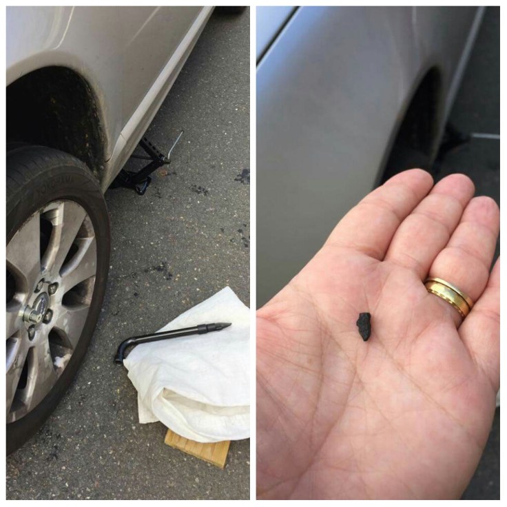 As we exit the car park our car starts to make the most horrendous screeching noise, we have suddenly become the main attraction. After a quick look underneath The Boss decides to drive on smiling at all our new admirers, then stops at the very first empty layby and stops acting so cool. He’s convinced it’s a stone in the brakes but can’t see or shift it. We try the “See what develops” method for a further ten miles and two pointing villages before giving in and removing the wheel and the offending stone fell out from the brakes. Hate it when he’s right, but so relieved too.