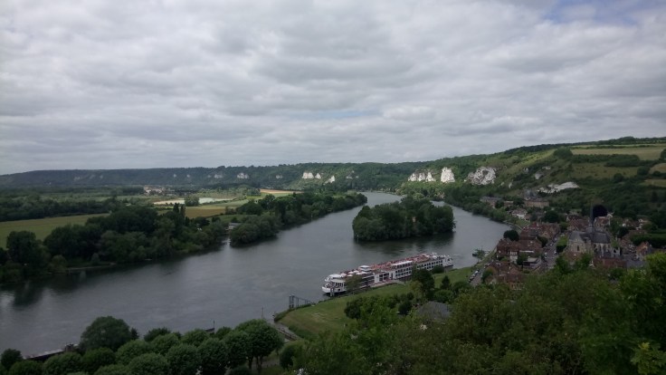 Two days left, oh no, we don’t want it to end. We thought about the Normandy beaches today but decided the distance was a bit too far, then Rouen, but having done both before took a pleasant thirty mile drive to Les Andelys and its history scarred English built castle set in a fabulous natural chalk cliff horseshoe on the River Seine.