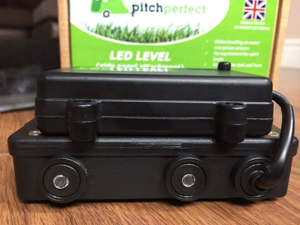 On our latest trip we tested this LED Level from http://www.pitchperfect-uk.com. The device has two bright LED lights on a level horizontal alignment. If the unit is not level only one LED illuminates on the higher side, when perfectly level two LEDs illuminate. There are two LED model options, an ‘Integrated’ model that can be permanently attached to the underside of your caravan, or the ‘Suction Mount’ model we are trying, with a ‘side panel attachment’.
