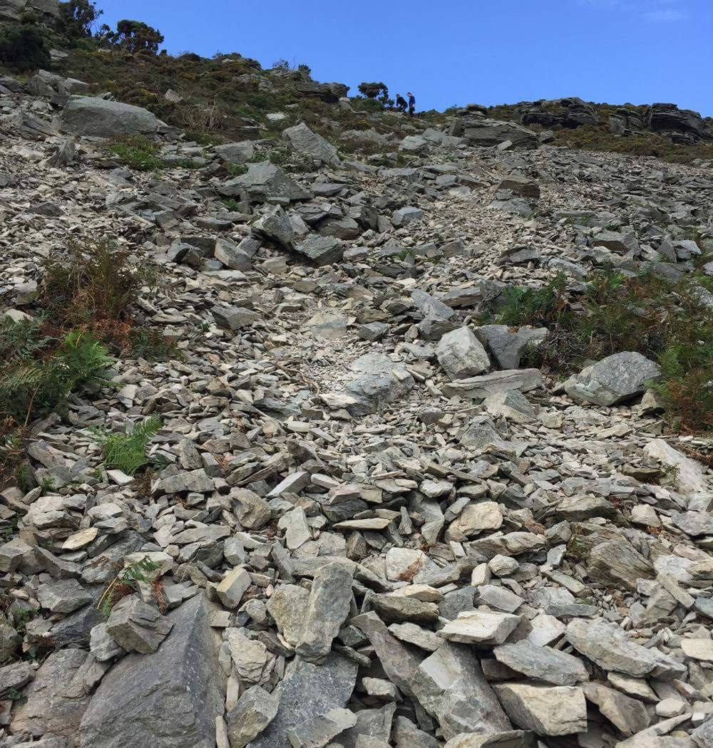 Climbing down was another matter, he realises we need to retrace our entire route across the ridge or take the direct descent down what was basically, drifts of loose rock. Hhmm.. that was fun, I wonder what all the red flags at the foot were telling us.