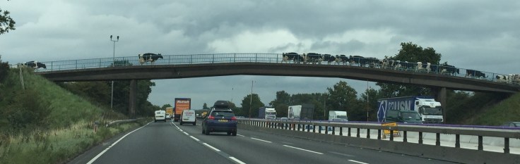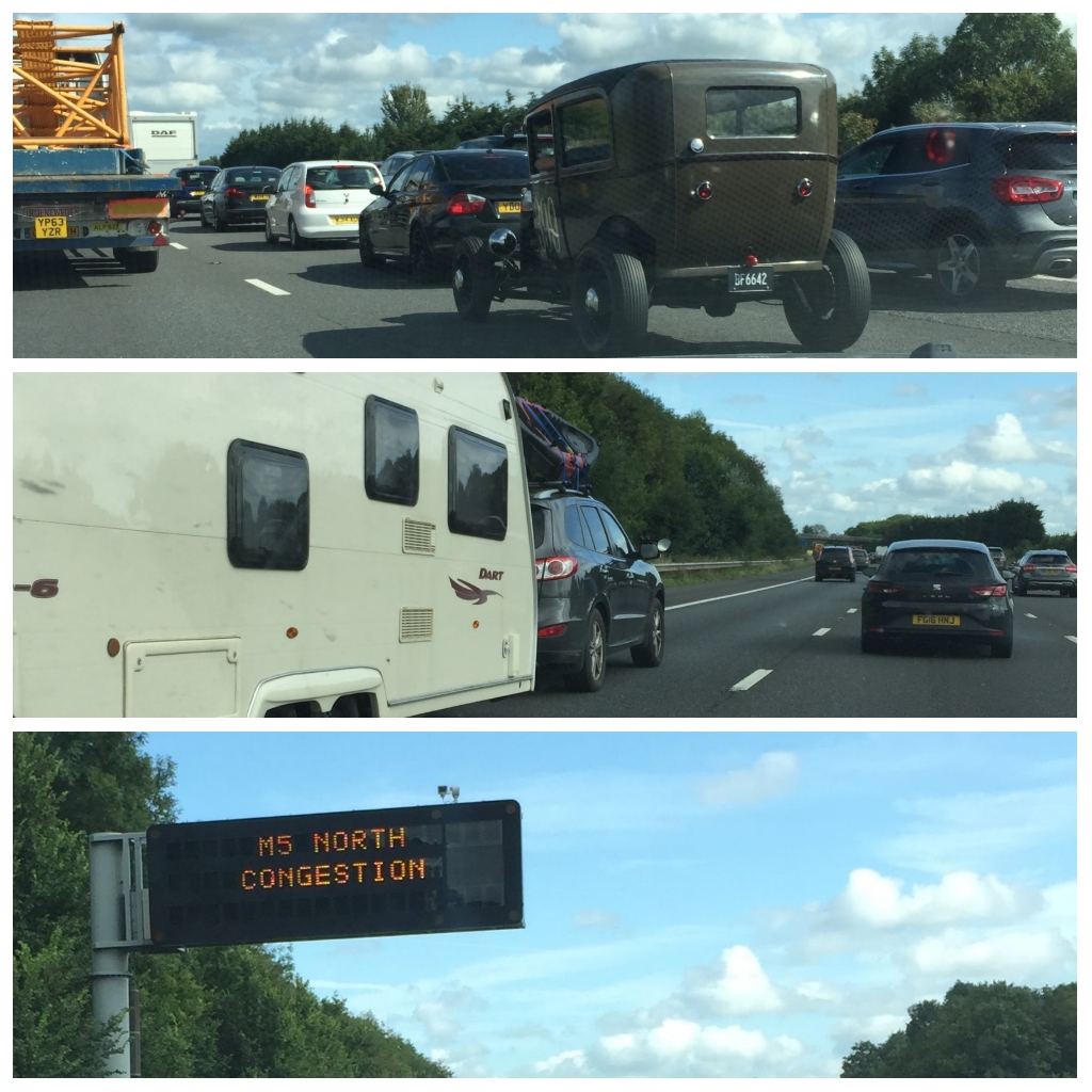 Country lanes give way to motorways busy with people heading north, south, east and west. Signs flash telling us that the road is busy, I’m not sure we would have worked that out without the sign. Roadworks slow us down, mandatory speed limits flash above us.