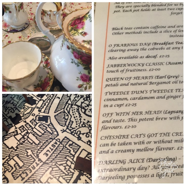 Bedecked and furnished in a wonderful Alice in Wonderland theme and a map of Clitheroe covering the floor. Tea (proper leaf tea) was served in a pretty China Tea set and the Panini filled a space within The Boss quite nicely. By the time we left all tables were occupied and deservedly so. Beware the Jabberwock, my son! Bellies full we head back out onto the street, where next…