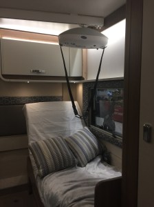 There is even an accessible caravan, complete with a wider door, ramp and clamping points for a wheelchair. An onboard hoist goes from the bathroom to the bed which is also adjustable to suit the needs of the individual.