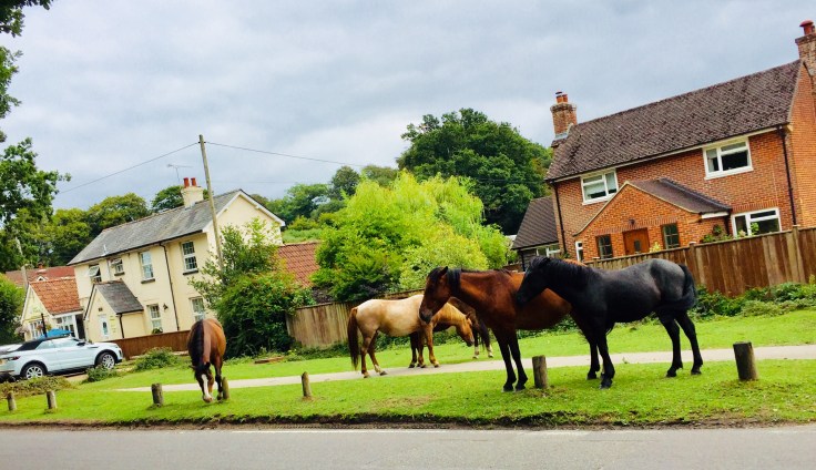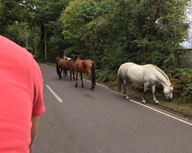 As much as we are out of shape now the good old Brookes saddles fit like a glove as soon as we sit on them. The breeze is cooling as we cycle out of the New Forest Centenary Site and over the cattle grid… brrrrrddd, welcomed into the Forest by ponies, standing, almost contemplating, in the road, as they do.