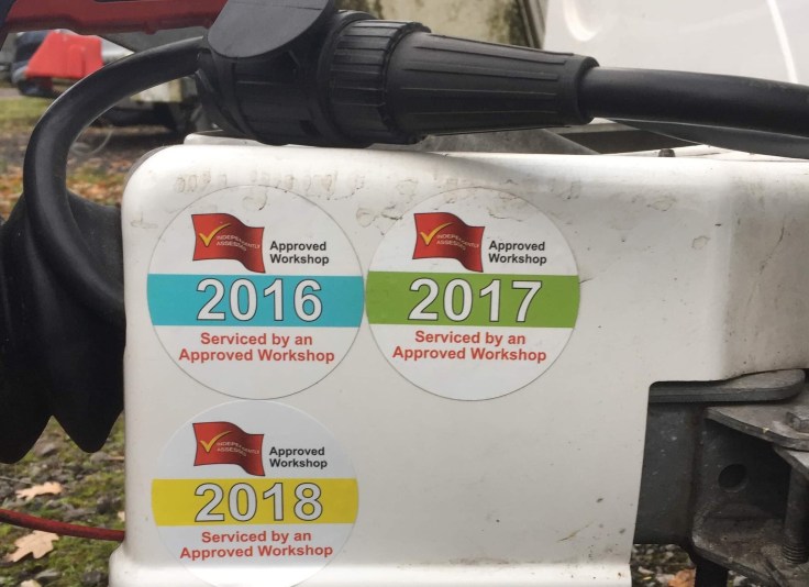With an impending service on the caravan, it needed emptying and scrubbing from top to bottom. Not a fun job in the cold and the wet, bedding removed, eight months of clothes and uniform, our belongings all squeezed into the car to be taken home and washed, sorted and stored until work resumes next season. Bits and pieces that are relevant to caravan holidays were restored and packed in readiness for our next trip away in a few weeks. Promised frost over the next few nights, we drained the water and pulled all cushions away from the walls, fridge wedged open, we were ready for Brian the Caravan Service Man to come and do our annual service. Shiny yellow sticker added to our collection and a clean bill of health. Time to have a quick glance around, check the windows and sky lights and head back to bricks and mortar.