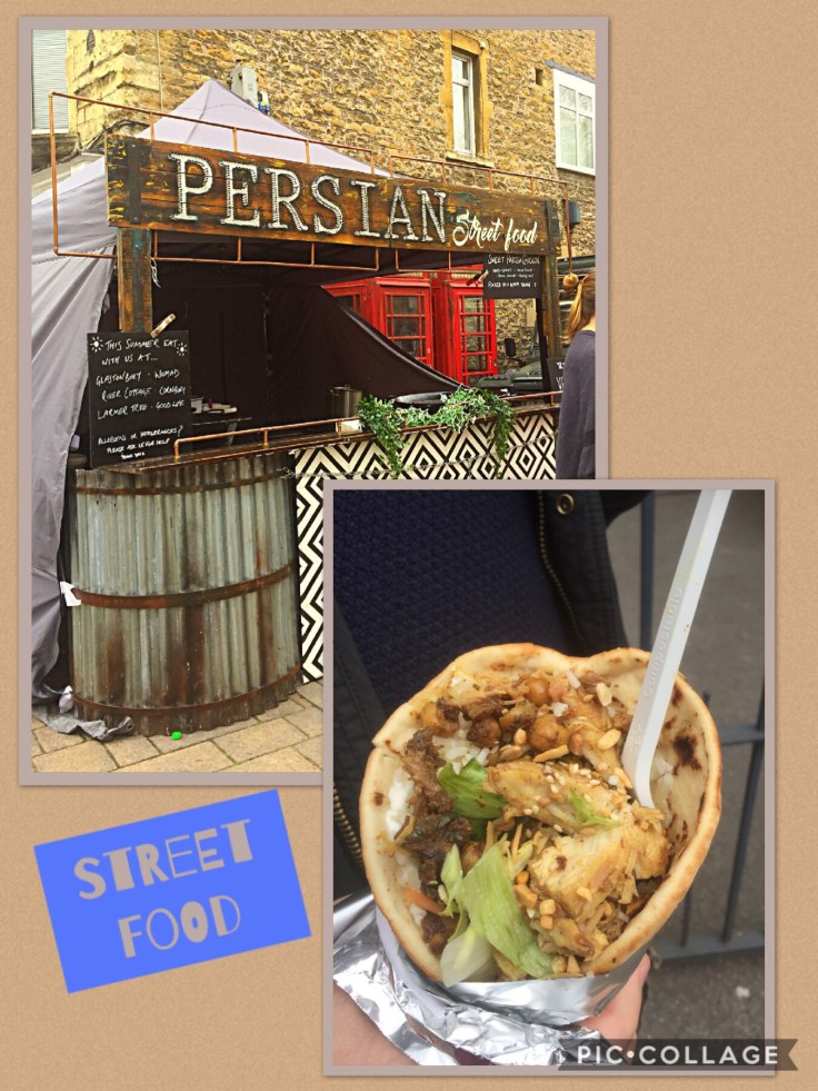 Samples of cheese, breads and street foods. God, how I love street food. We’ve eaten dinner and tea is planned, (northerners, remember, no lunch and dinner for us). Would it be wrong to plan an extra meal into our day? We don’t take much persuading, we’ll have tonight’s tea tomorrow. We stand in the queue of a Persian food stall advertising Sweet Chicken Harissa rolled in a soft Naan, taste buds tantalised, the queue moves slowly forward. Spiced chicken wafts in the breeze along the line of people patiently waiting. My giddy aunt, it was worth the wait.