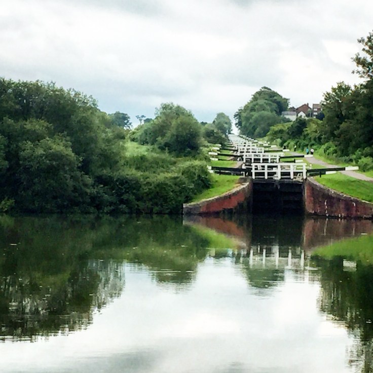 Weaving our way along the path towards the canal we are very aware of the almost instant peace and tranquility. Looking across the fence towards the locks you suddenly realise how high up we are and why the locks were needed.
