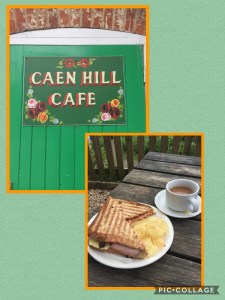 In the cafe the lady behind the counter welcomes us and asks we put our parking money in the pot on the counter. Smells waft towards us making my taste buds drool. Blackboards boast delights that make my tummy rumble. The Boss opts for a cappuccino and an egg and sausage barm oozing brown sauce, a hater of all things egg related, I choose a bacon, Brie and chilli jam toasty with a pot of tea. Even though I was starving I still managed to slowly eat and savour every mouthful, by gum, it was good.