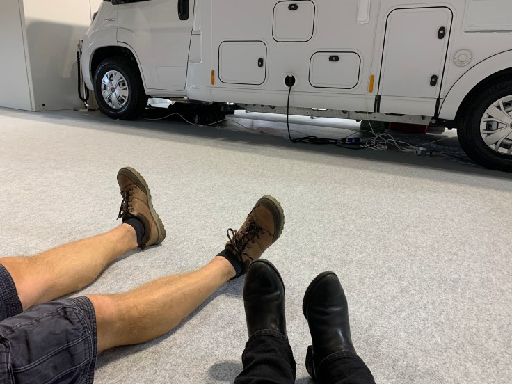 We’re off to the NEC Motorhome and Caravan Show so clothing is important today. Light layers that can be stripped off and donned as needed. As a lady of a certain age, tropical moments are unpredictable and the NEC isn’t the coolest of places. Comfy shoes are pulled on, today’s going to see a fair few steps completed. Rucksack stuffed full of butties and water and were nearly ready to go. Our aim was to be in the car for 6am, we are too far behind.
