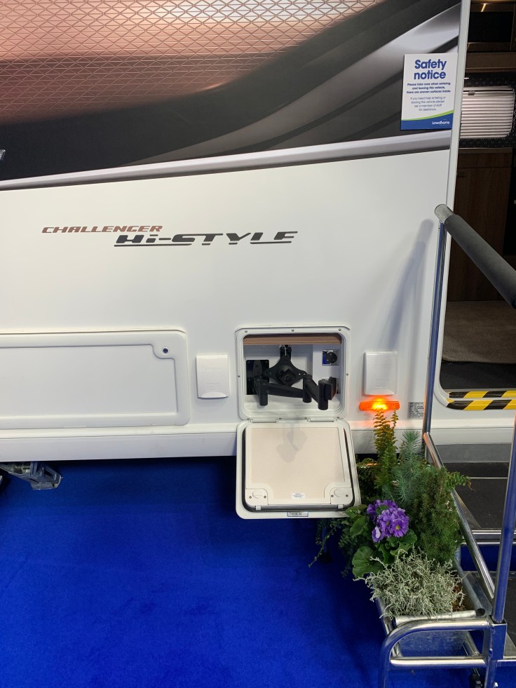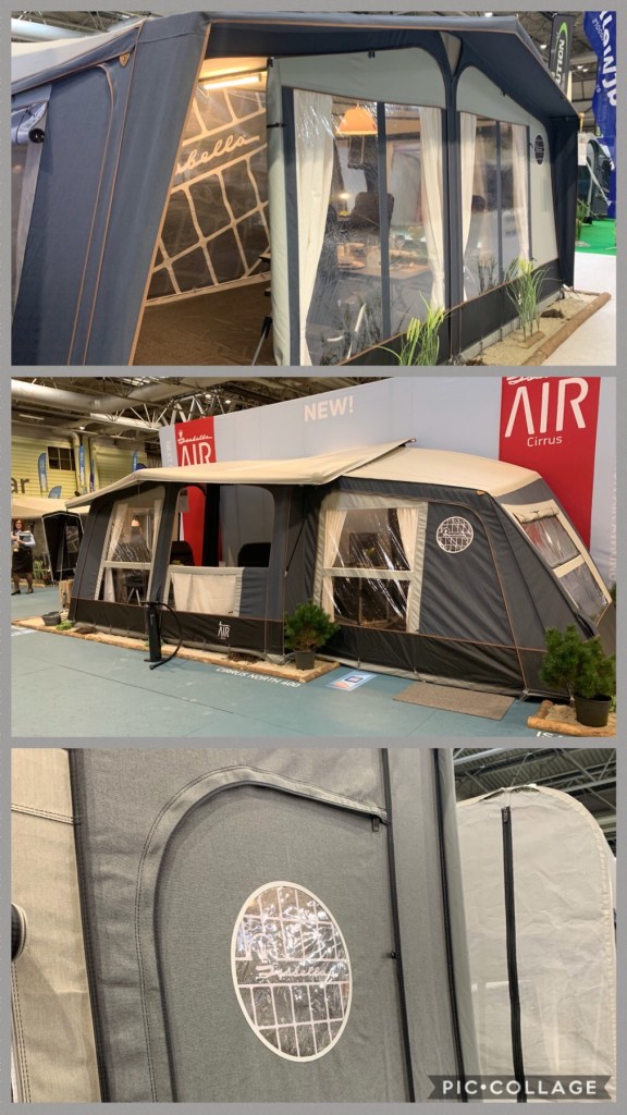 Over at Isabella, we wander around looking at awnings, hoping our new one will be up on display, it isn’t, so we mooch around their stand having a good nosey at their new air awning.