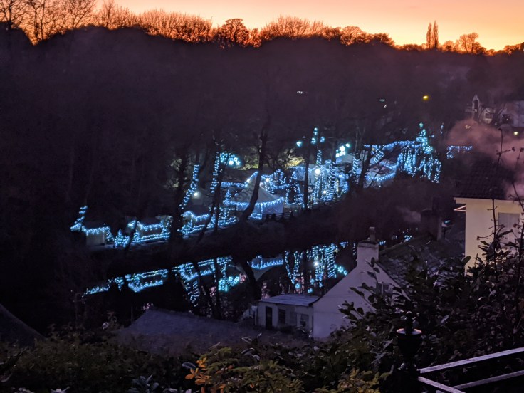 I then randomly drag him into church, possibly for the first time since we married, only this time to see what a Christmas Tree Festival is all about … he even admitted it was interesting … such praise. By now it is getting cold so we head back to the car park. He spots a public loo by the car park entrance and makes haste, but it’s locked, I tell him there was one at the church, to which he replies, “At my age you need to be pointing out every toilet”.
