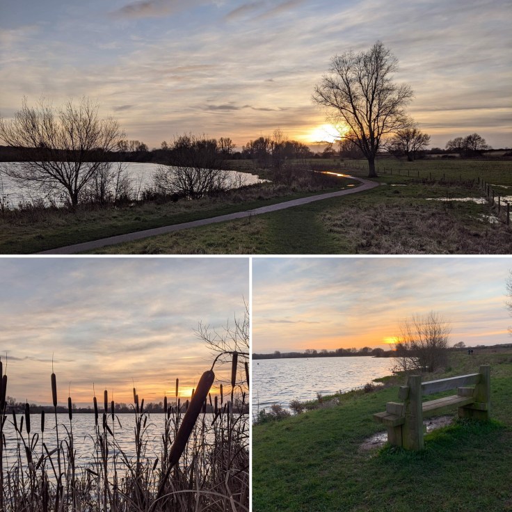 The path at the side of the railway line leads us into Ferry Meadows, Nene Park. Walking along the trail, heading towards the lakes, we chat. Surprised by the amount of people still out and about, dog walking, cycling and running. The light is starting to fade and the temperature is starting to drop. As a child I used to walk for miles with my Grandad and the dog. I enjoyed soaking up information about nature that he shared as we walked. “Always look around you as you walk, you’ll always see things other people miss.” He used to say. Today I spot a heron, hidden at the side of the water, facing the bank, looking down, perfectly still. We stand, just looking at this beautiful bird, stood quite close to us. Quick as a flash it’s head drops and snaps back up again. In it’s mouth, dinner. Little legs flaying, either side of the bird’s beak. A little mouse or water vole has been the unfortunate item on tonight’s menu. Turning slowly towards the water, the heron drops its head towards the water, swiftly drowns the poor little mite and swallows. Not one to care about the full belly of the heron, I’m traumatised by watching a poor little mouse become dinner. (If you can zoom in, the picture below is ‘post’ drowning and ‘pre’ swallowing).