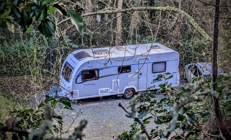 Pulling on to site we are met by lovely wardens who tell us to “Go for a walk and choose a pitch”. The Site is a web of cul de sacs, dead ends, best to know which pitch your heading to before you get there. We choose a pitch down in a dip and set up in next to no time. Kettle on in less than half an hour. The wind is starting to pick up, our spot, thankfully, is quite sheltered.
