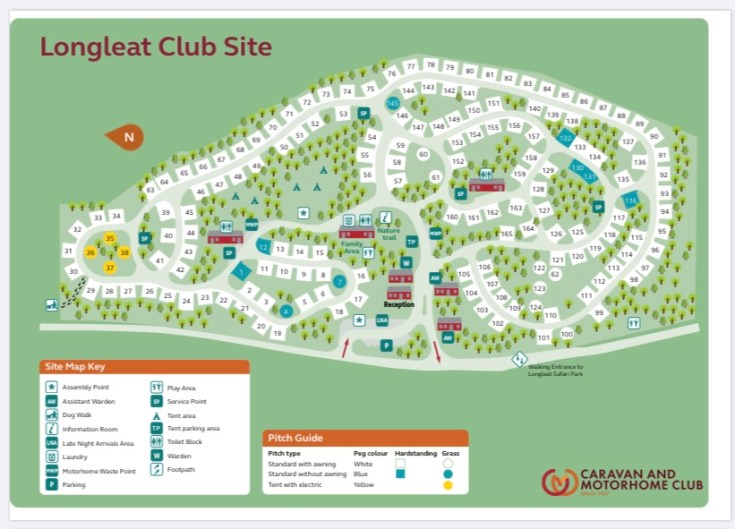 At the end of a 2 mile narrow lane with plenty of passing places, Longleat CAMC Site is situated right next door to the Safari Park. A 50 metre walk or a half mile drive to the Safari Park. The Safari Park is so close that you will hear the animals from the comfort of your pitch. Sea Lions bark throughout the day, the roar of the lions is clearly audible whilst the site settles down for the evening and early morning risers could wake to the distant howling wolves.