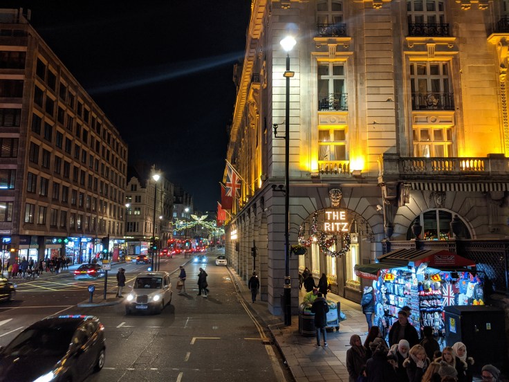 Our top deck, open top, back row seats were now getting cold so the sight of The Ritz Hotel was very welcoming. We walked back to Waterloo Station imagining the crazy scenes for the next evening, New Year’s Eve and the Thames River fireworks. Equally, we were hoping there would be a train to catch as industrial action had decimated the days train schedules.