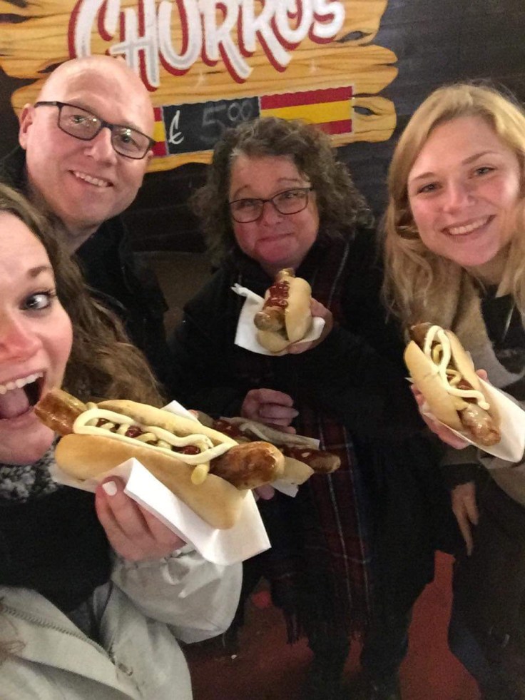 Out into the now cooling air of this late December day and we head to the Christmas Market on the promise of a Bratwurst and a chip on a stick. The Bratwurst in all it’s mustardy glory was that hot it took the roof off my mouth, countless huffs and puffs and attempts to blow the house down and the nucleic sausage eventually cooled to a palatable temperature. Next, peri-peri chip on a stick, £5 for a peri-peri sprinkled, spiralled, fried spud on a stick, but flipping ‘eck it was good. Dessert was supplied by a stall further into the market, 12 maple syrup coated, mini pancakes sprinkled with ground, caramelised nuts, simply divine.