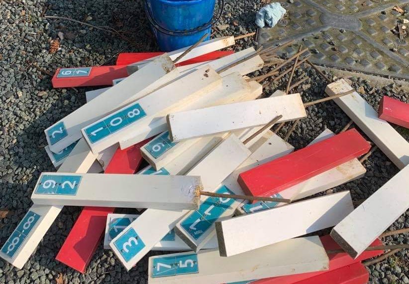 We return from dinner and I spend a couple of hours washing 117 pitch peg markers and Steve starts power washing the service points, apparently the concrete is white, not green.