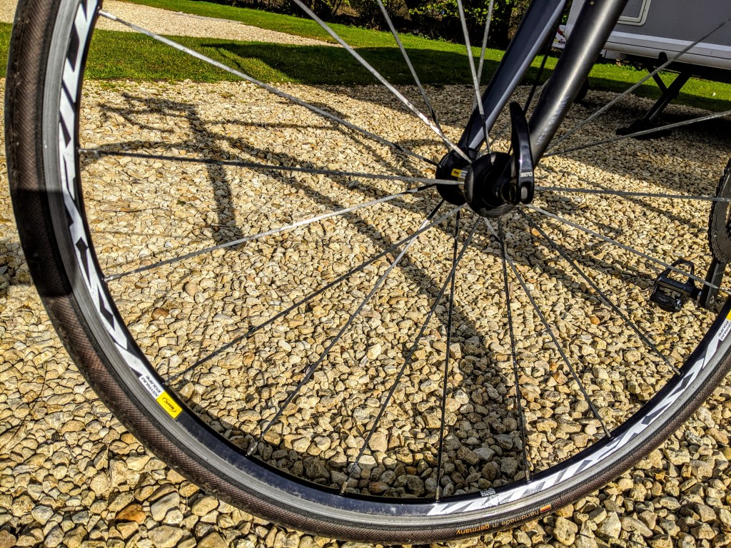I’ve gone and got myself a puncture, a thorn straight through. Guess what? Not only have I no clothes here, we also have no inner tubes for my bike here, they’re all at home. He digs out a super skinny racing inner tube and sticks it in my fat tyre. He says “Not to worry, you don’t ride fast enough for a high speed blow out”.