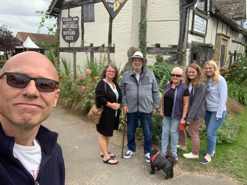 With Dad’s struggle to walk we decided the following day to take them on a Magical Mystery Car Tour. Taking in lots of quaint Cotswolds villages were we were able to park, potter, admire the quintessential Britishness, back to the car and onto the next Cotswold delight, ending with a drive up to Broadway Tower at the end of the afternoon. Just about managed to get Dad to stagger within shot of the Tower for a photo. Talked him out of wearing his silly hat today.