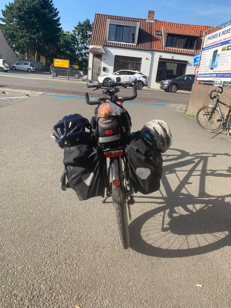 The ride back started with about three loops of Bruges centre because he couldn’t see the GPS in the bright sunshine, he later blames this for the days mileage hitting 42 miles. We stopped in the pretty town of Sluis to use the supermarket and fill the panniers on the Tandem to busting point – it’s a good job it’s electric assist.