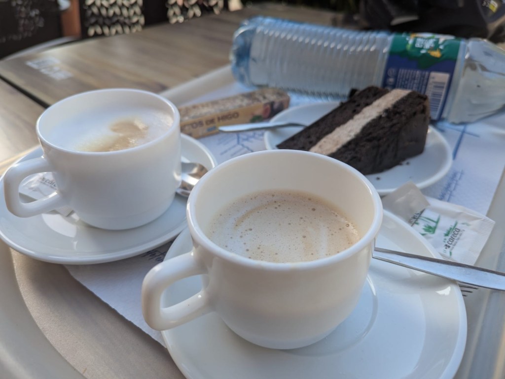 Ruben was on his bike only 10 minutes behind me. He knew my planned schedule and hoped to find me on route, we agreed to meet at a restaurant in Vilaflor, in the 10 minutes I waited I drank 2 Cappuccino coffees, ate an Oreo cake, a fig cereal bar and refilled my 2 x 800ml bottles … again. Ruben arrived saying he wished to support me at this halfway point (much nicer than Mordor today) and send me on my way with his best wishes before he went back down … until we clipped back into our pedals … “OK, I’ll go with you”