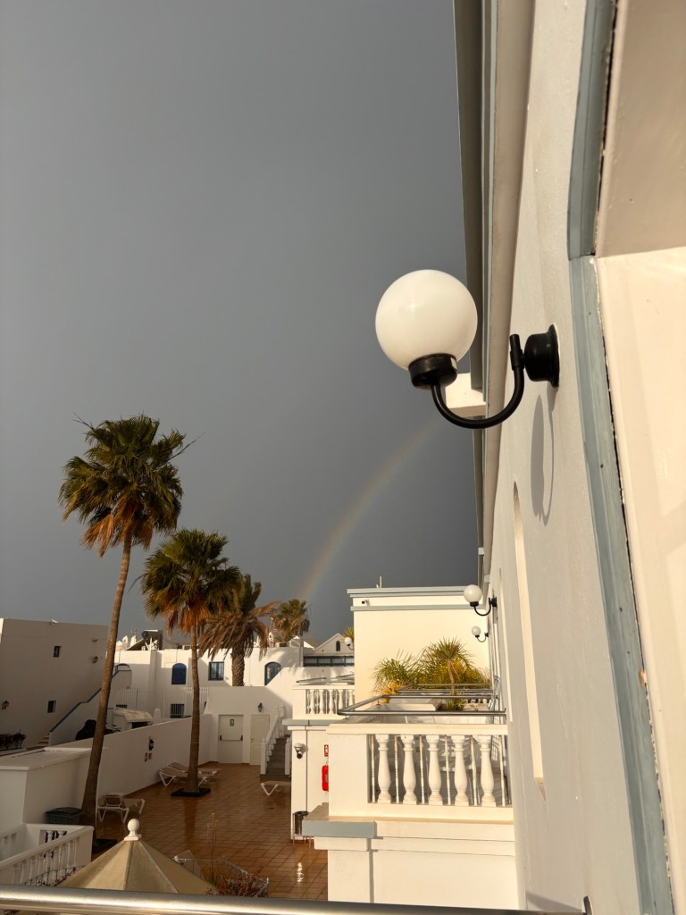 Lanzarote is in view, the pilot announces that we are preparing to land.  The beautiful island of wind and sunshine is sitting under a big, black cloud. My luck really has run out.
