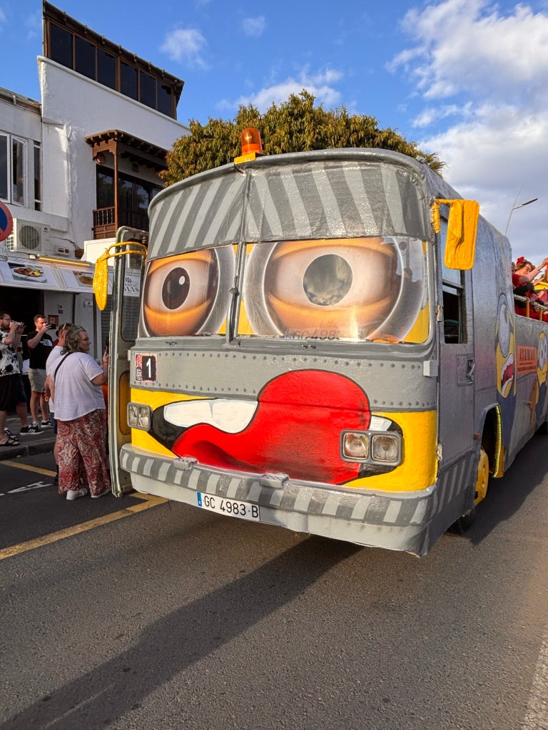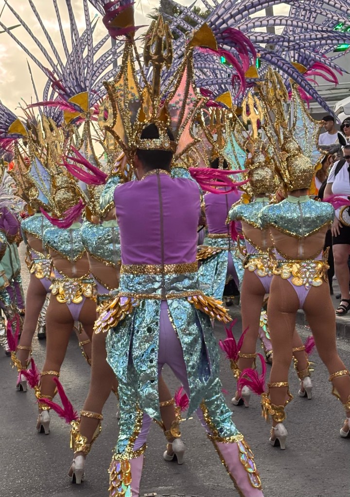 Last year we got to see the St. Patrick’s Day carnival and were a little disappointed. I think local authorities took over the shenanigans and the masses rebelled. The best part of the parade last year was watching as the resort turned green and holiday makers dressed up. This year we missed St. Patrick’s Day but we did get to see the Puerto del Carmen carnival. It falls on the weekend after Shrove Tuesday so the date changes annually.