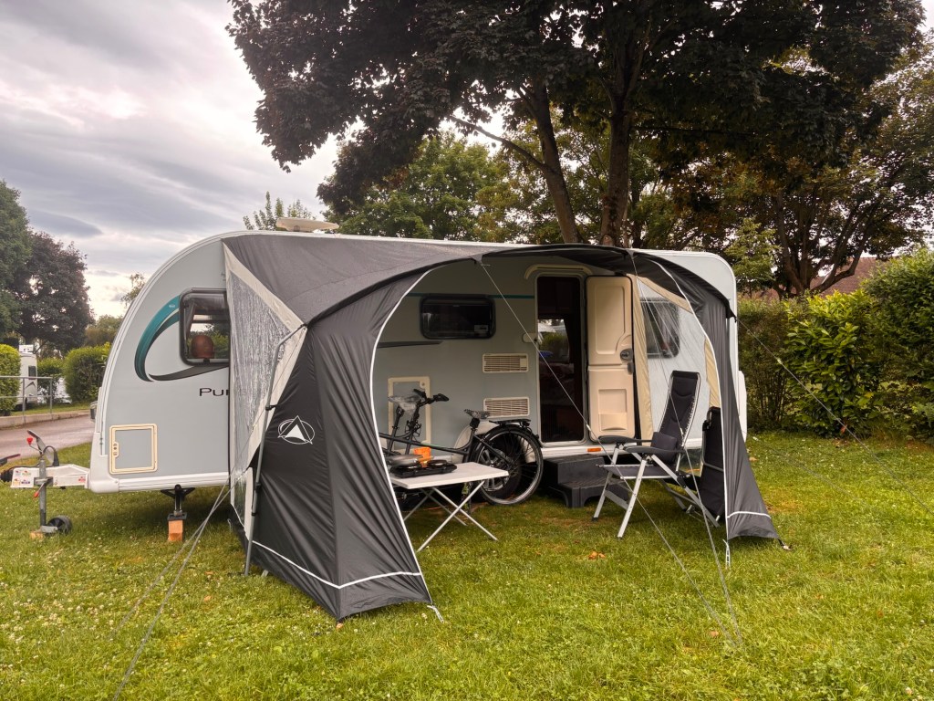 Riquewihr has been a lovely site to stop off at. Just two nights, I possibly could have done a third as I don’t think we gave the beautiful town of Riquewihr enough of our time. The site was good. Relatively modern facilities, spacious grass pitches and free WiFi. The only downside was that the grass on our pitch was a little too long but if that’s my only grumble we’ve done well again. There is a lot of tree cover, we got lucky and were allocated quite an open pitch, with the beautifully smelling Linden Tree.