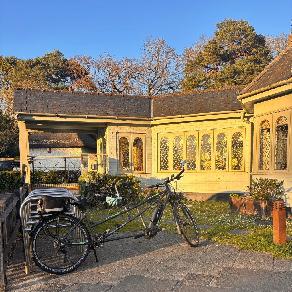A lie-in is always a good idea on the day you go away, if you can. What followed was a flurry of manic energy, doors opening and closing, bags being flung about, and a last-minute decision to hoist the tandem onto the car roof. We hadn’t planned to take it, but on this surprisingly mild morning, it suddenly felt essential. Naturally, this meant locating all the necessary “bits and bobs.” Steve, of course, cycles so often he knows exactly where everything is. Me? Not a clue.