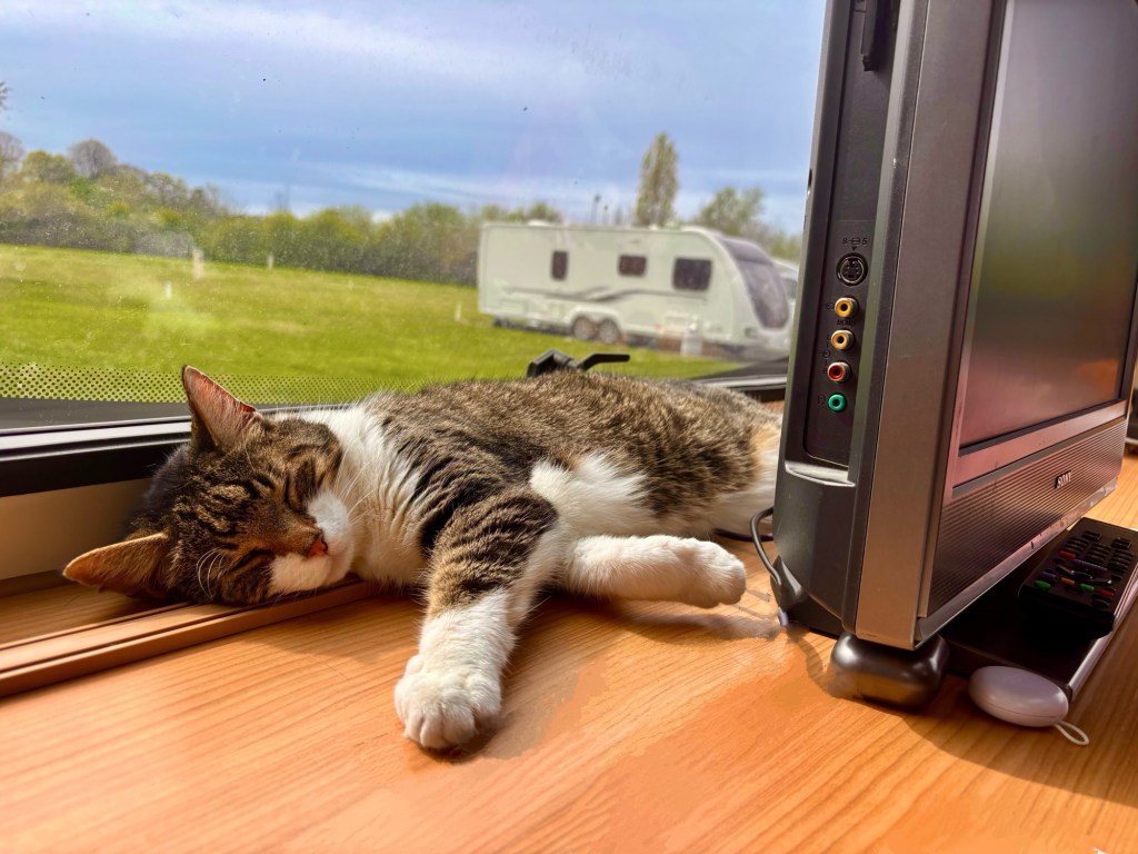 The real challenge of this trip, however, wasn’t the packing, it was Oscar. The aim of this trip, successfully transport him on a longer journey than ever before. The reality, true to form, he peed in his carrier before we’d even reached the storage site. Fortunately, I’d learned from past experiences. Newspaper lining? Check. Anti-bacterial wipes? Check. Emergency bags? Oh yes. Crisis managed, cat cleaned, caravan hooked up, let’s hit the road.