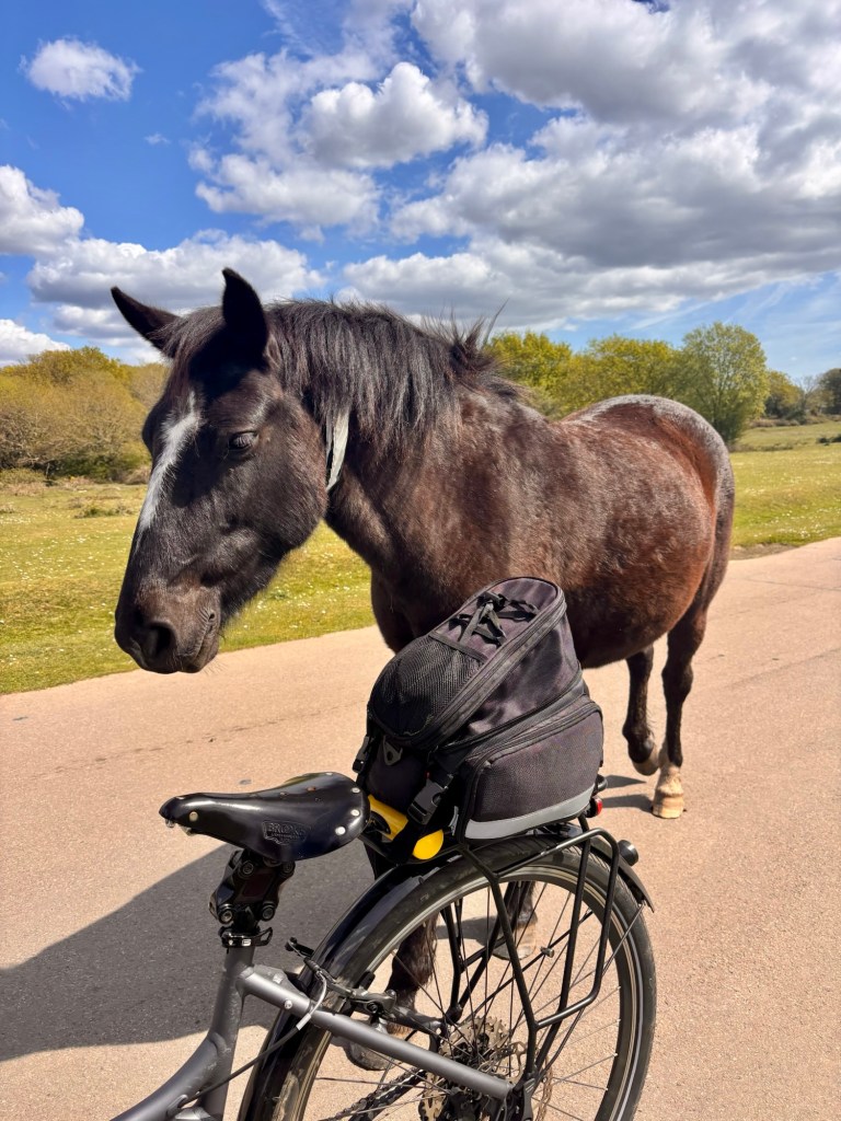 On the return journey, we stopped to photograph some New Forest ponies. One of them wandered straight over, clearly fascinated by our tandem. It gave it a proper inspection, it obviously had never seen a tandem before and I’m still not convinced it approved.